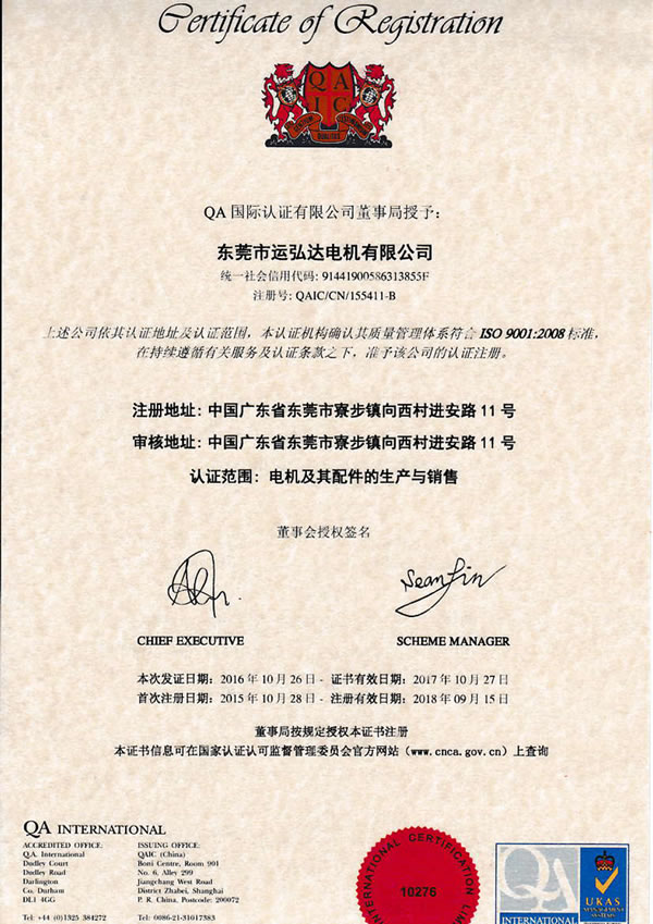 均通過ISO9001:2008,CE,ROHS,UL認證,我們所有馬達都遵守ISO9001:2008質量控制體系,為您提供高品質的產品。